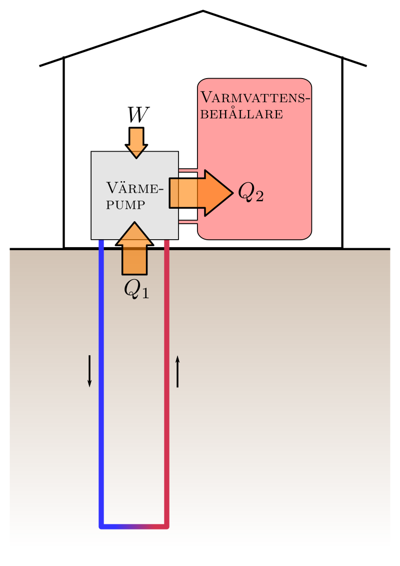 W = arbetet som värmepumpen utför med elektrisk energi