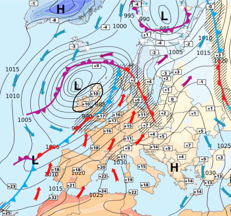Examinanden förväntas inte känna till fronternas rörelsehastighet i den ifrågavarande situationen vilket innebär att tidsramen för väderförändringarnas bedöms flexibelt.