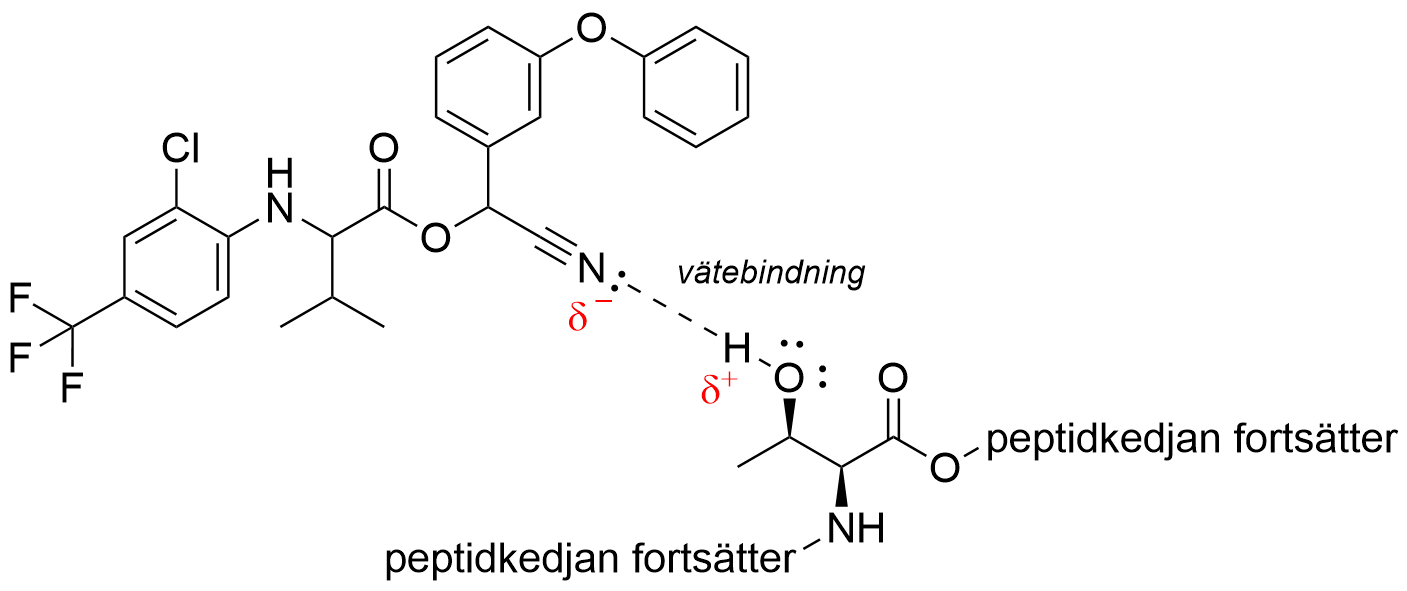 Vätebindningen mellan sidogruppen i treonin och fluvalinat