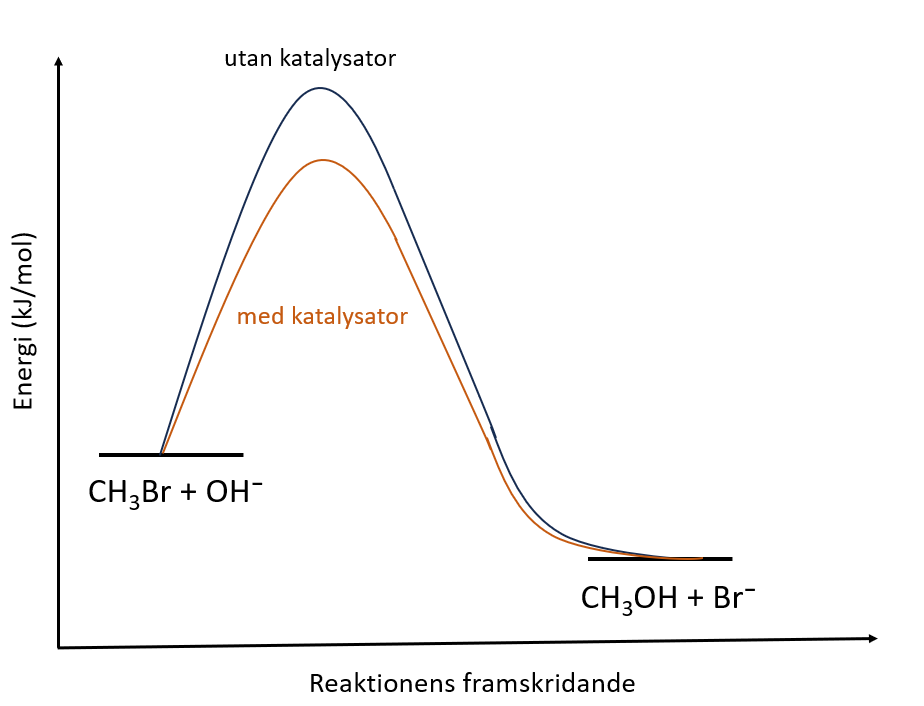 - Reaktionens aktiveringsenergi är lägre när man använder en katalysator jämfört med den ursprungliga reaktionen utan katalysator. (2 p.)
